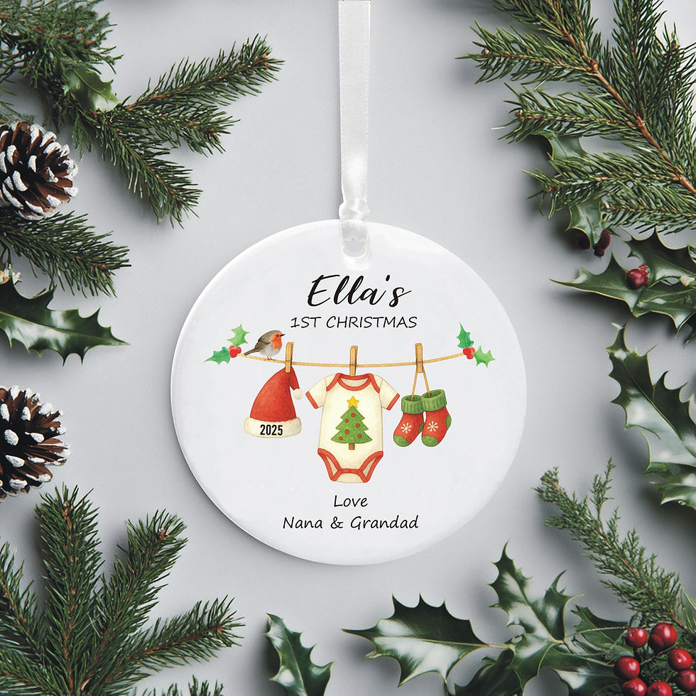Baby's First Christmas Festive Clothes Line Personalised Ceramic Tree Decoration